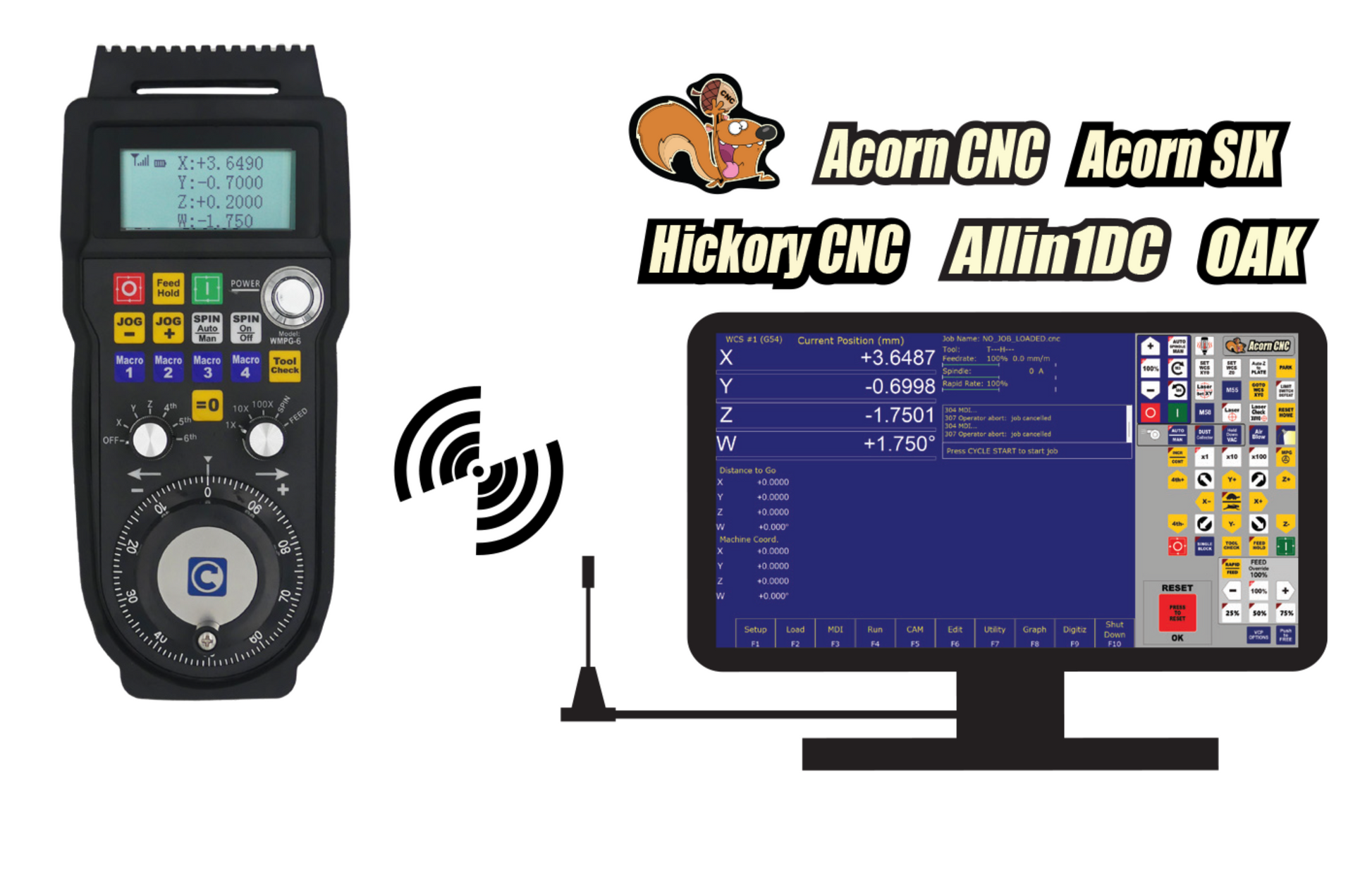 Take the control to where the work is! A game changing tool, the Centroid Wireless MPG handwheel CNC Control pendant allows the operator to set up jobs and tools conveniently and precisely remotely. No software or drivers to install. Plug and Play with Centroid CNC12 Pro CNC software, just plug in the included USB transmitter/receiver and start using it! Perfect for all types of Mills, Lathes, Routers and other specialty CNC machines. Control up to Six Axes from the palm of your hand! Multiple units can be used in the same location without issue.